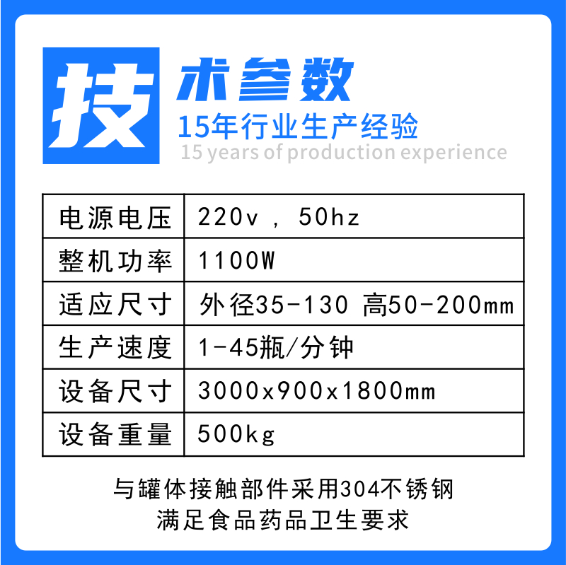4、該設備的生產效率是半自動臺式封罐機的3倍,而且由于采用全自動裝置封罐,將原來半自動封罐貼標工作的6人減至由1個或2個人完成,大大提高了生產效率,同時也降低了用工成本;